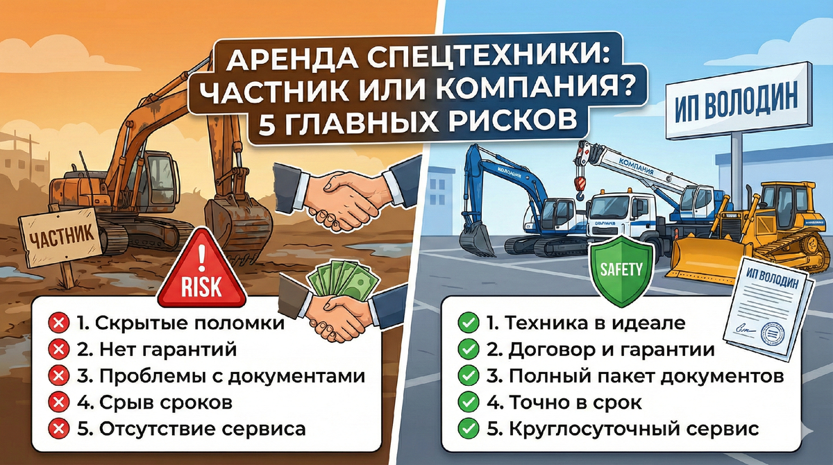 Однако опытные снабженцы и прорабы знают: эта разница в цене — не скидка, а плата за ваши риски. Аренда спецтехники у «частника» (физлица с одной-двумя машинами) часто оборачивается колоссальными убытками.