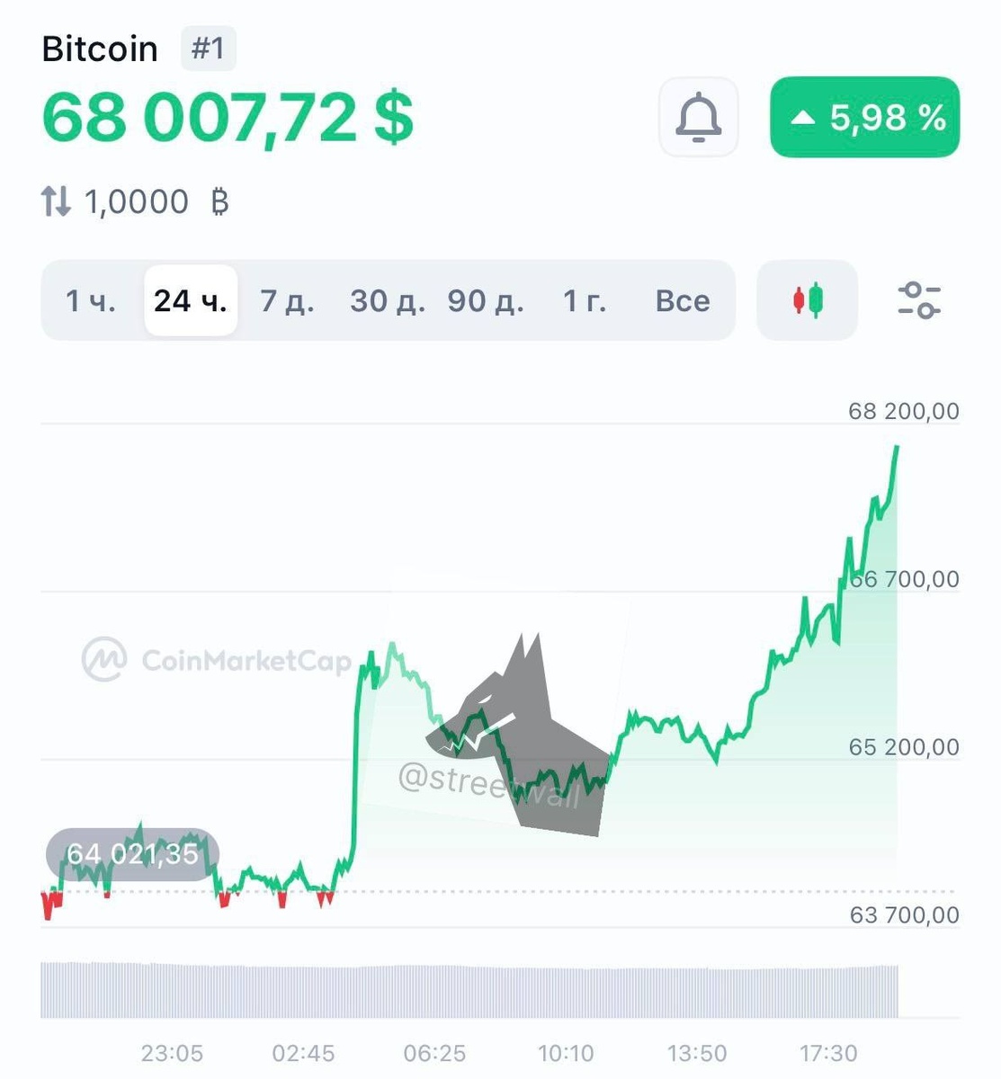 За сутки крипта выросла на 6%. ИнфоСплетник