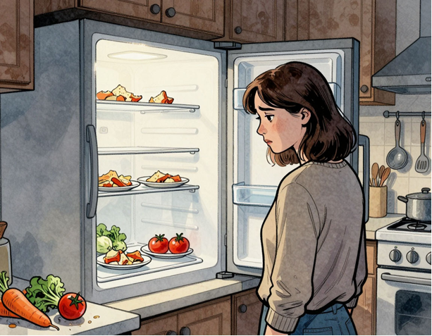 Алина стояла перед открытым холодильником, в очередной раз ощущая себя участником телеигры «Угадай блюдо по трём продуктам». Усталость накатывала волной. Казалось, только вчера закупались, а уже снова — пусто, и в голове зияющая пустота вместе с холодильником.