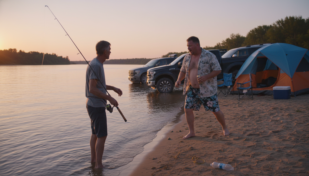 Рев моторов прервал мою идеальную утреннюю рыбалку самым бесцеремонным образом. На берег широкого волжского плеса, поднимая клубы пыли, вылетели два тяжелых внедорожника и тормознули буквально в десяти метрах от воды. Из машин вывалилась шумная компания: толпа взрослых, дети, надувные фламинго, мангалы и огромная колонка, из которой тут же ударили басы. Весь этот табор начал раскладывать шатры прямо у меня за спиной. Приветствую вас, уважаемые рыбаки, вы на канале "Клевая рыбалка". А ведь утро начиналось шикарно. Я приехал затемно, собрал свой деликатный Crazy Fish Arion, поставил вольфрамовую чебурашку на 3 грамма и начал выкашивать окуня на крошечную фиолетовую «танту». Кидал метров на двадцать, прямо под резкую песчаную бровку. Полосатый клевал исправно, садок приятно тяжелел. Я человек мирный. Берег длинный, река общая. Я просто чуть сместился в сторону и продолжил делать короткие забросы. Но через пятнадцать минут ко мне вальяжной походкой подошел один из отдыхающих — крупный мужи