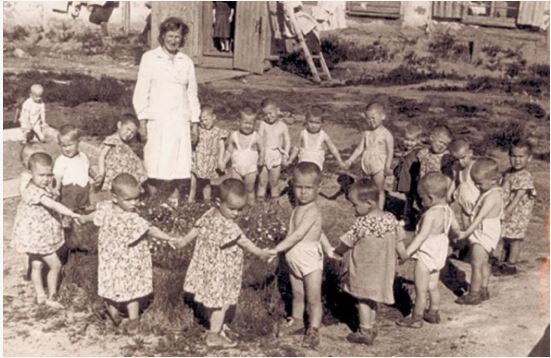 — Работа-то есть, да только… Все места заняты. Видите, я одна вот здесь с малышами. Хорошо, что девочки старшие приходят. Сейчас они на прачечной, стирать помогают, а потом придут сюда помогать. А так разве одной мне со всей этой командой справиться?