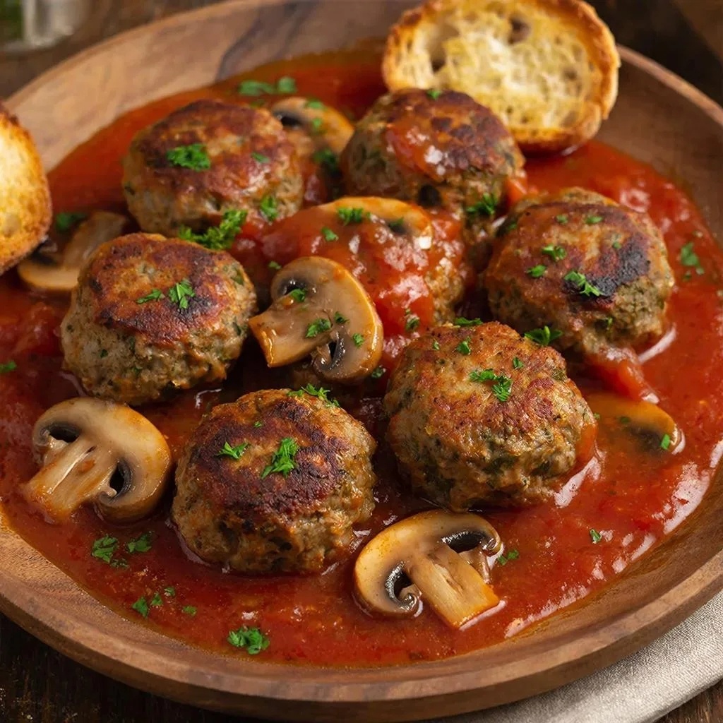 Предлагаю приготовить аппетитные и сытные фрикадельки с грибами в густом томатном соусе. Это простое, но оригинальное блюдо станет отличным дополнением к любому гарниру или самостоятельным ужином.
