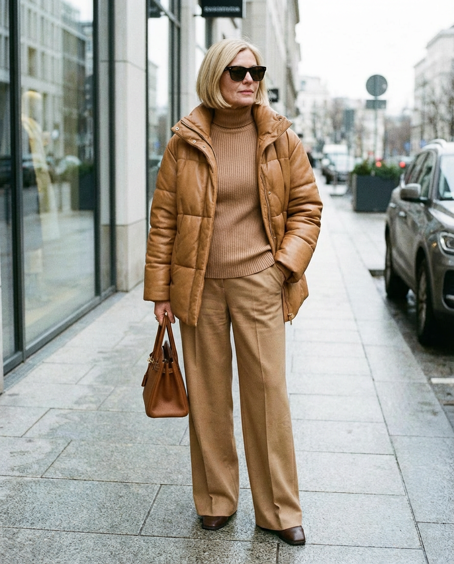 Представьте, как выглядит образ, где фактуры «спорят» между собой: блестящий пуховик + грубый трикотаж + гладкая кожа. Хаос. А теперь — где они «поют в унисон»: матовая шерсть + рельефная вязка + замша. Гармония. Работайте с контрастом фактур, а не цветов, если хотите выглядеть статусно без усилий.