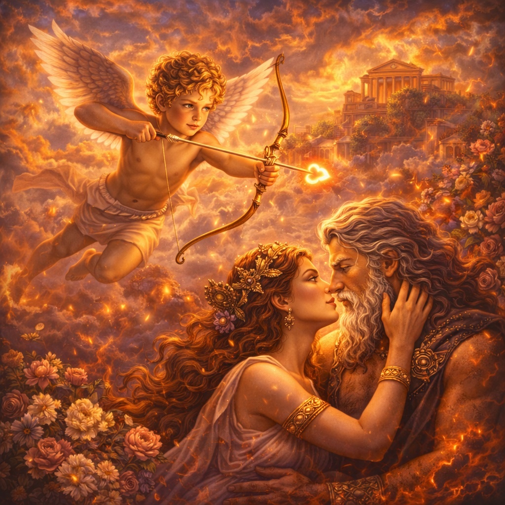 В греческой мифологии есть сила, которая не гремит, не разрушает стены городов и не правит стихиями. Она тише грома Зевса и незаметнее шагов Гермеса. Но именно она способна перевернуть Олимп. Эрос — бог желания, чьи стрелы заставляли влюбляться даже тех, кто клялся в вечной холодности. Его часто изображают ребёнком с крыльями. Лёгким, игривым, почти безобидным. Но за этой внешностью скрывается одна из самых древних и могущественных сил космоса. Эрос древнее Олимпа В ранних космогонических мифах Эрос — не сын Афродиты, а первичная сила, возникшая вместе с Хаосом. Он — энергия притяжения, благодаря которой мир начал соединяться, формироваться, рождать жизнь. Без Эроса не было бы ни богов, ни людей. Он — принцип объединения. Тяга одного к другому. Желание, которое создаёт движение. Позже мифология делает его сыном Афродиты. Но даже в этом образе он сохраняет древнюю мощь. Стрелы, которые не выбирают У Эроса два вида стрел. Золотые — вызывают любовь. Свинцовые — отвращение. Одна стрела — и