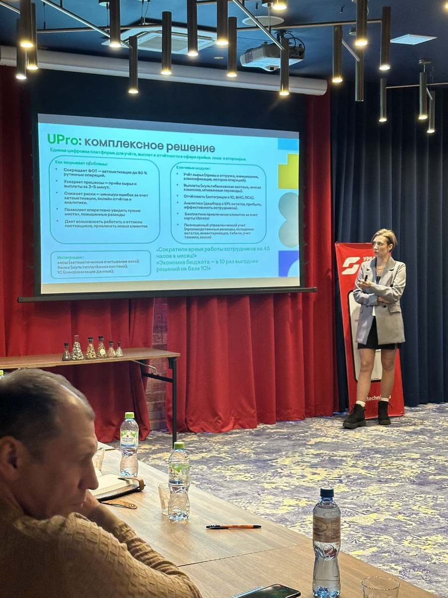 Второе выступление, компания Ubirator, Екатерина Симонченко рассказала про оптимизацию процессов и систему учета Upro