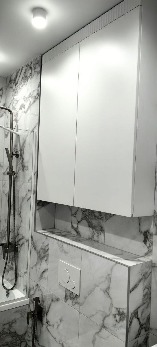Набор для ванной комнаты. Фасады мдф с фрезеровкой. Корпус белый влагостойкий. Петли, ящики, с доводчиками.