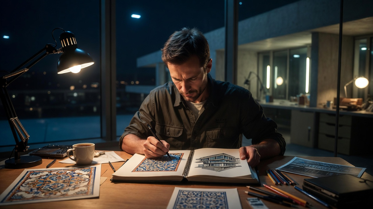 Ночью Алексей не мог уснуть. Перед глазами стояли изразцы. Эти птицы, цветы, узоры — они будто оживали в памяти, просились наружу, требовали воплощения. Он встал, включил свет в кабинете. Достал чистый лист бумаги — не планшет, не компьютер, а простую бумагу, какой не пользовался много лет. И карандаш. Рука сама потянулась рисовать. Первый изразец — жар-птица. Он помнил каждую деталь: изгиб хвоста, форму крыльев, глазастый, немного наивный взгляд. Линии ложились на бумагу легко, будто кто-то водил его рукой. Потом цветок. Потом грифон. Потом орнамент — сложный, переплетающийся, как северные узоры на старых тканях. Алексей рисовал и не замечал времени. Часы летели незаметно. За окном светало, а он всё сидел, склонившись над столом, и оживлял забытую красоту. Закончив копировать, он откинулся на спинку стула и посмотрел на результат. Целая серия рисунков — точные, детальные, живые. Лучше любой фотографии. И вдруг его осенило. Он взял новый лист и начал рисовать снова. Но теперь не копиро