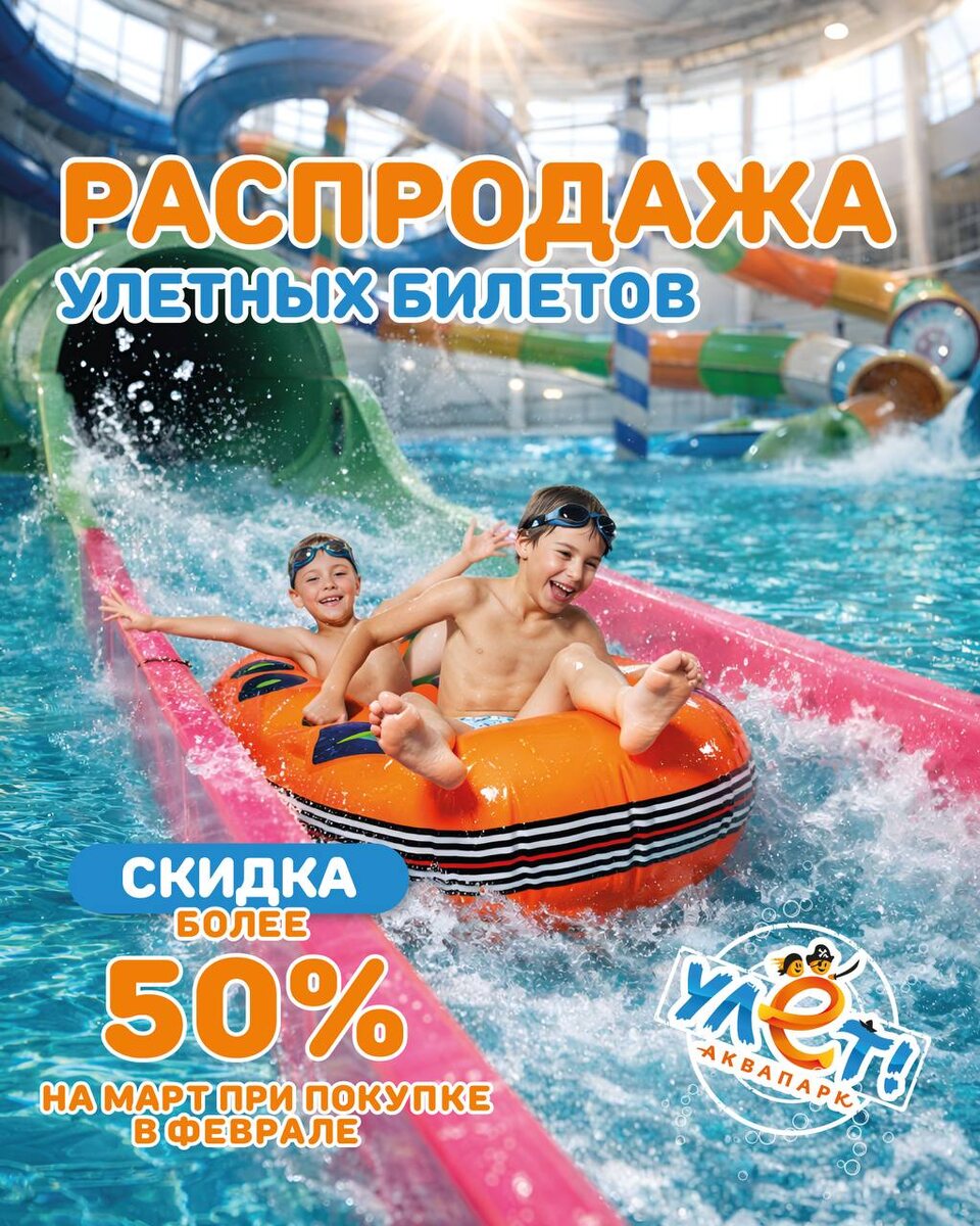 : ✅захватывающие водные аттракционы ✅ заряд энергией и новыми силами ✅классное настроение и новые впечатления ✅полное расслабление тела и души Купить безлимитный билет за 1800₽ вместо 4050₽ на promo.aquaulet.ru 📱 Проведите незабываемый день с близкими в атмосфере тепла, вечного лета и веселья🏖 🏷️билет можно купить по 28 февраля 2026 🏷️билетом можно воспользоваться с 1 марта по 31 марта 2026 🏷️действует для всех категорий возрастов от 5 лет. 🏷️действует на 1 гостя 🏷️не суммируется с другими акциями и скидками