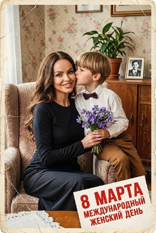 🌷 Советская открытка 50-х любимый сыночек или внук поздравляет маму или бабушку с 8 марта 👉 Приложите личное фото мамы или бабушки + сына или внука. #8марта@promtgs Использовали BANANA 👉 Создать свое фото в 1 клик 👉 Промт 💬 Создаем в боте: https://t.me/gptcyber_bot 💬 Чат подписчиков для вопросов https://t.me/ChatGptCyberbot