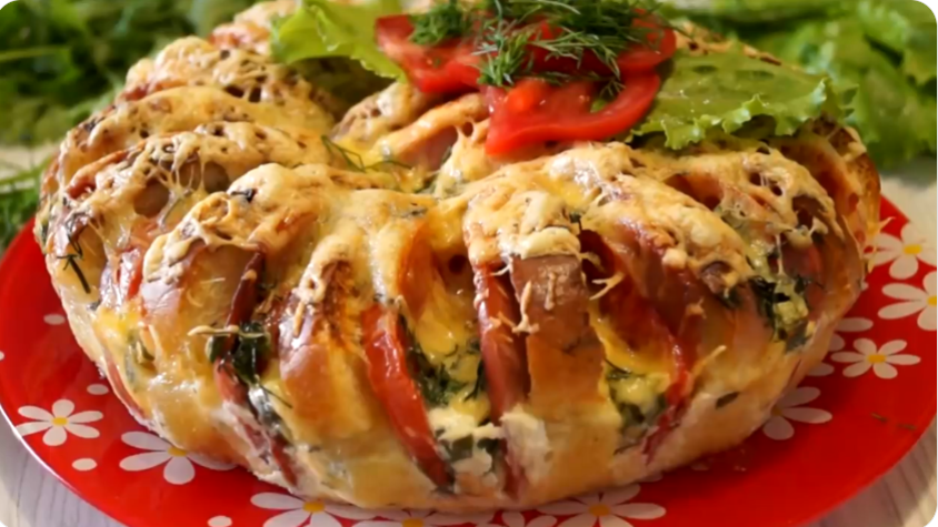 Это сытный и красивый пирог, который готовится из того, что почти всегда есть в холодильнике. Основа у него — обычный батон, а начинка может меняться под ваш вкус. Главный плюс: с ним справится даже ребенок, а посуды после готовки придется мыть по минимуму.