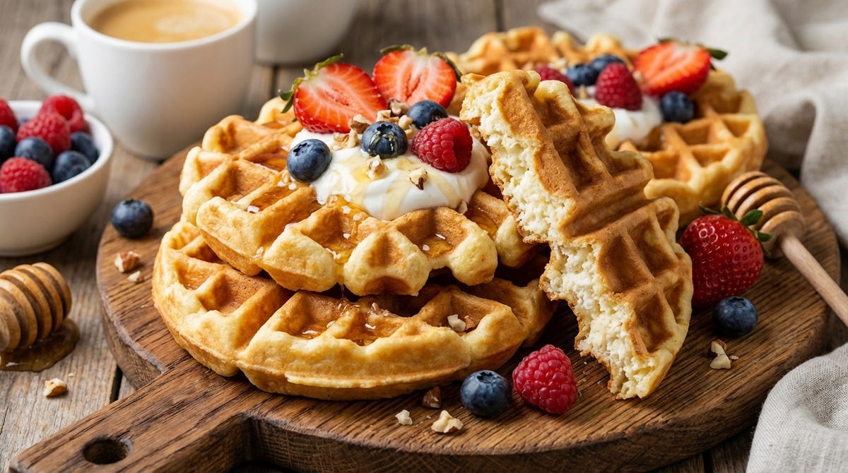 Если хочется чего-то уютного “как домашняя выпечка”, но без долгой возни — эти вафли спасают. Тесто замешивается за 5 минут, а вафельница делает всю магию: снаружи — румяная корочка, внутри — мягкая творожная нежность. Выход: 6–8 вафель (зависит от вафельницы)