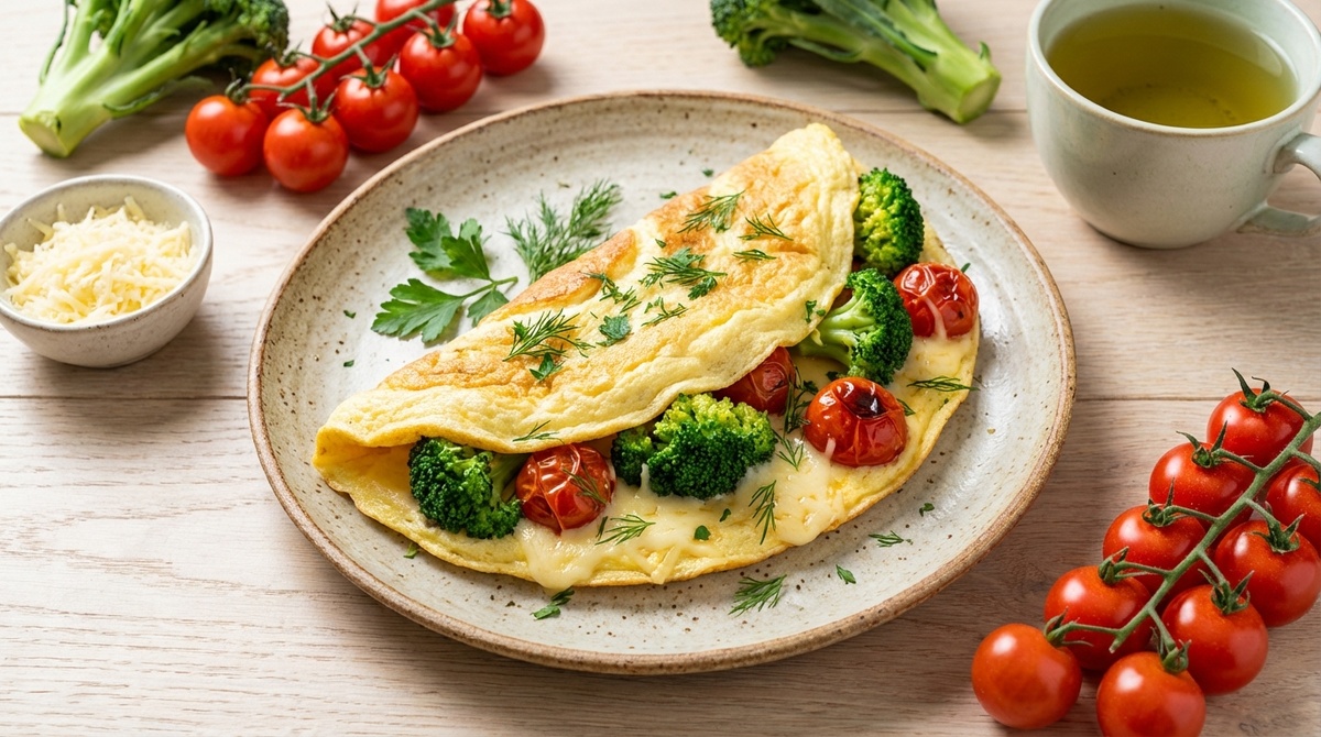 Если утром хочется вкусно, сытно и без тяжести, этот рецепт — настоящая палочка-выручалочка. Омлет получается воздушным, нежным, а овощи добавляют сочность и объём. И главное — готовится быстро, без сложных техник. ✅ Подходит для лёгкого питания