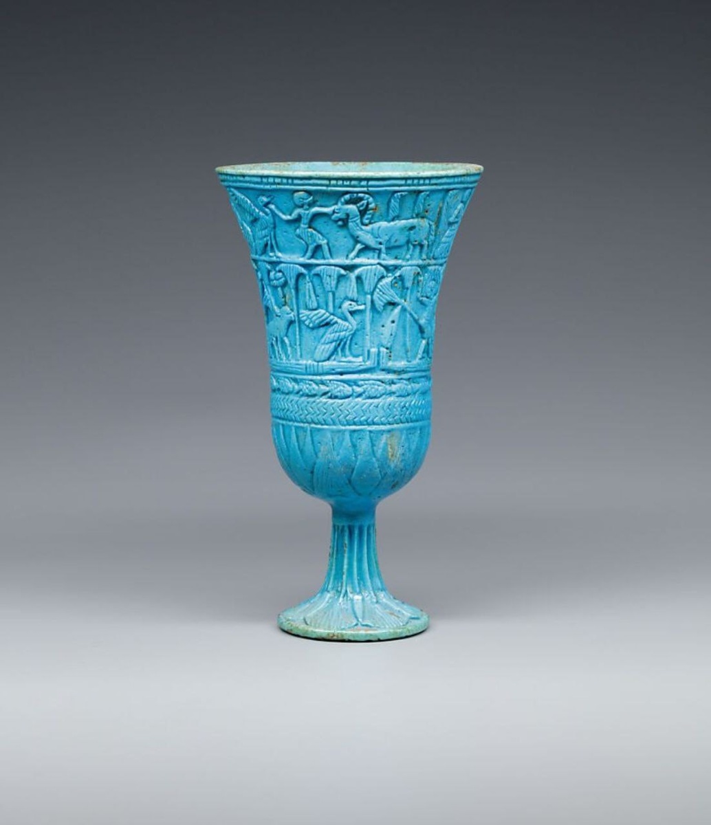 Египетский фаянсовый кубок в форме лотоса, высота 14,5 см.