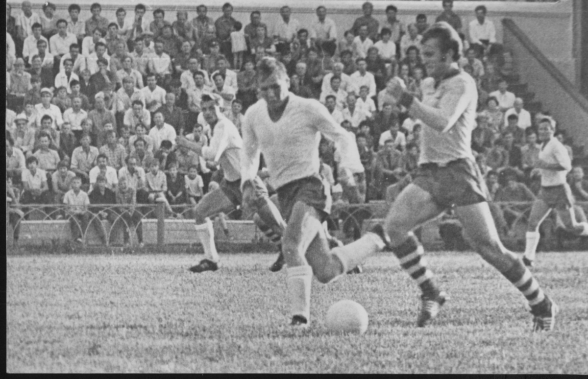 Затем судьба на какое-то время развела нас и ровно через четыре года ставропольская и брянская команды встретились вновь. Первый матч состоялся 24 мая 1974 года в Брянске, где соперники разошлись нулевой ничьей. Турнирное положение команд перед матчем оказалось не одинаковым: гости занимали в турнирной таблице седьмое место, а хозяева поля - двенадцатое. Плюс, не сбылись надежды поклонников брянской дружины на хорошую погоду: дождь, ливший всю ночь, не прекратился и к началу матча, и как следствие, разбухший от излишней влаги газон. Главный вопрос состоял в том, кто лучше приспособился к тяжелому, раскисшему полю, какую тактику изберут команды. Надо сказать, что гости действовали более рационально. С помощью длинных передач они быстрее достигали штрафной площадки соперника. Такая тактика оказалась оправдана: поле мокрое, мяч скользкий - тут в любую минуту могут быть всякие неожиданности. И хотя атаки и удары гостей угрозы не представляли, все же защиту хозяев поля они все время держали в напряжении. Наши же футболисты, наоборот, предпочли темповую игру с помощью короткого паса. Они тем самым захватили инициативу, действовали острее и имели гораздо больше возможностей добиться успеха. Уже на первых минутах мяч просто чудом не влетел в ворота. Был момент, когда защитник гостей лишь в последнее мгновенье выбил мяч из пустых ворот. И все же на 25-й минуте Ю. Марушкин забил гол, но судья зафиксировал положение «вне игры» и мяч не засчитал. После отдыха гости заиграли быстрее, но инициативой владели недолго. Брянские динамовцы один за другим создают у ворот соперника опасные моменты. Стопроцентные возможности открыть счет имеют В. Фроленков, Ю. Марушкин и другие игроки, но не могут «распечатать» ворота гостей. Надо отдать должное и вратарю ставропольской команды Рафику Гасанову: он играл четко и надежно.