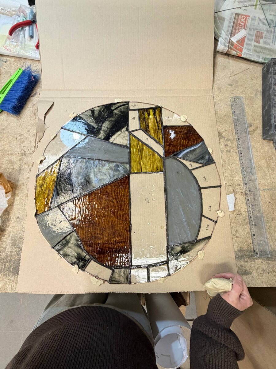 На предыдущем этапе я обтачивала стеклышки и оборачивала их специальной фольгой. Сегодня уже паяла, наносила патину. Без каркаса собирать (паять) сложно, витраж разъезжается. Одну деталь пришлось вымерять и отрезать заново. Дальше - больше! Для ночника нужна подсветка… Меня (очень надеюсь) спасет добрый молодец с тридэ принтером и сделает обод и подложку, т.к. ночник имеет нестандартный диаметр и готово ничего нет. В этот обод мы вмонтируем подсветку (Видео позже смонтирую) Все прозрачные части скоро тоже изменят свой вид