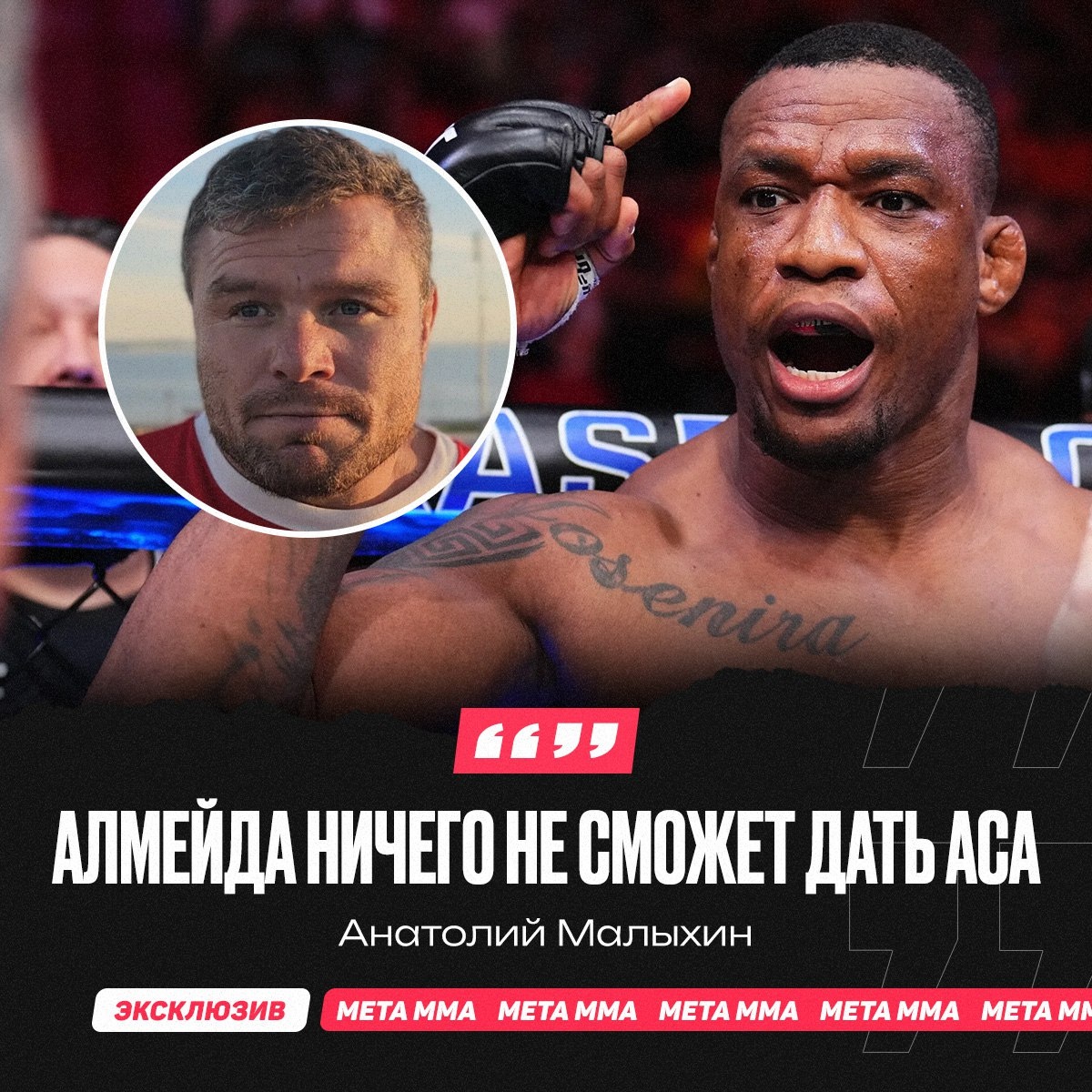 Чемпион ONE в двух весовых категориях Анатолий Малыхин прокомментировал переход Жаилтона Алмейды в лигу ACA, усомнившись в его пользе для промоушена. «Алмейда – топовый боец и хороший борец. Поединок с бразильцем не будет ни для кого легкой прогулкой в ACA. Но с другой стороны, мир ММА сильно меняется и скучные бойцы, даже если они выигрывают, они не интересны зрителям. Мир меняется, нужно удивлять и медийно, и своим разнообразием в стойке. А если ты борешься, то все надо делать красиво – выходить на болевые приемы, подключать динамику. Если ты просто скучно лежишь, то ты никому не будешь нужен, а не только UFC. Алмейда ничего не сможет дать ACA. Да, бразилец может и за пояс подраться, посмотрим, как у него пойдет. Он парень неслабый, но главное, чтобы давал зрелище и развивал ACA медийно», — заявил Малыхин в интервью MMA.Metaratings.ru. ❓Согласны с мнением Малыхина? 👇 👍 — Да, прав ⚡️ — Думаю, что Жаилтон может стать чемпионом АСА 👊 Подпишись на Meta MMA | Meta MMA в MAX | Наш