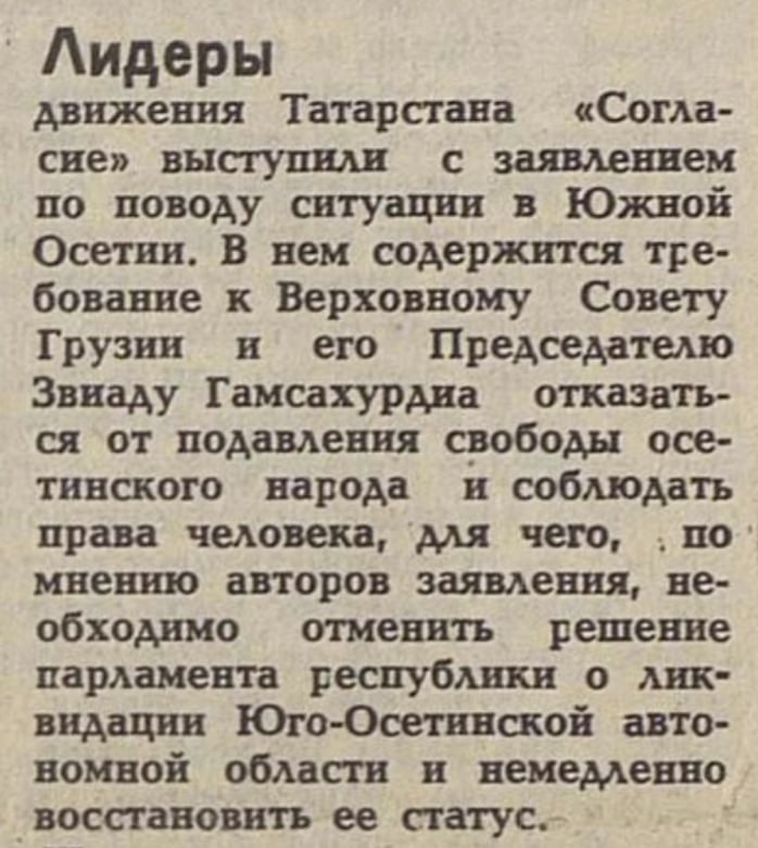 Источник: «Вечерняя Москва», № 40 (27.02.91). «Согласие» — одно из старейших общественных движений Татарстана. Оно выступает за: 1. Равный статус татарского и русского языков в Татарстана без ущемления прав незнающих один из них; 2. Обучение всех детей в РТ двум языкам с раннего возраста (а не деление детей разной национальности по различным школам); 3. Особый статус республики, но без выхода из России; 4. Сохранение и российского, и татарстанского гражданства; 5. Признание Российской Конституции, и заключение двустороннего Договора между РФ и РТ; Во главе организации два сопредседателя: • Беляев Владимир Александрович — инициатор создания МДТ «Согласие», академик Академии политических наук РФ, заведующий кафедрой социологии, политологии и менеджмента КГТУ им. А. Н. Туполева. • Хайруллин Рашат Валеевич — писатель, тренер-методист, автор ряда книг по здоровому образу жизни.