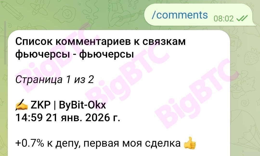 BigBTC - Арбитраж крипты без карт 🤑Наши телеграмм-боты - сканеры в реальном времени ищут связки для арбитража криптовалют без использования банковских карт (как в классическом p2p арбитраже) ✅Все наши ресурсы: https://bigbtc.store/link/dzen Binance - BestChange бот: https://t.me/cryptocurrency_arbitrage_bot?start=dzen ByBit - BestChange бот: https://t.me/arbitrage_bybit_bot?start=dzen Mexc - BestChange бот: https://t.me/arbitrage_mexc_bot?start=dzen Межбиржевой бот: https://t.me/BigBTC_arbitrage_bot?start=dzen Фандинг - фьючерс бот: https://t.me/BigBTC_funding_bot?start=dzen Обучающий бот (бесплатный): https://t.me/BigBTC_learning_bot Партнёрская программа: https://t.me/BigBTC_ref_bot 🌐Сайт: https://BigBTC.store 💬Чат: https://t.me/BigBTCchat Нужно нажать кнопку "Я не бот" при первом входе 📰Канал: https://t.me/BigBTCchannel Новости, отзывы, гайды, итоги работы 👨💻Поддержка 1: https://t.me/BigBTCsupport4 👨💻Поддержка 2: https://t.me/BigBTCsupport3 🎁Ссылки регистрации на биржах,