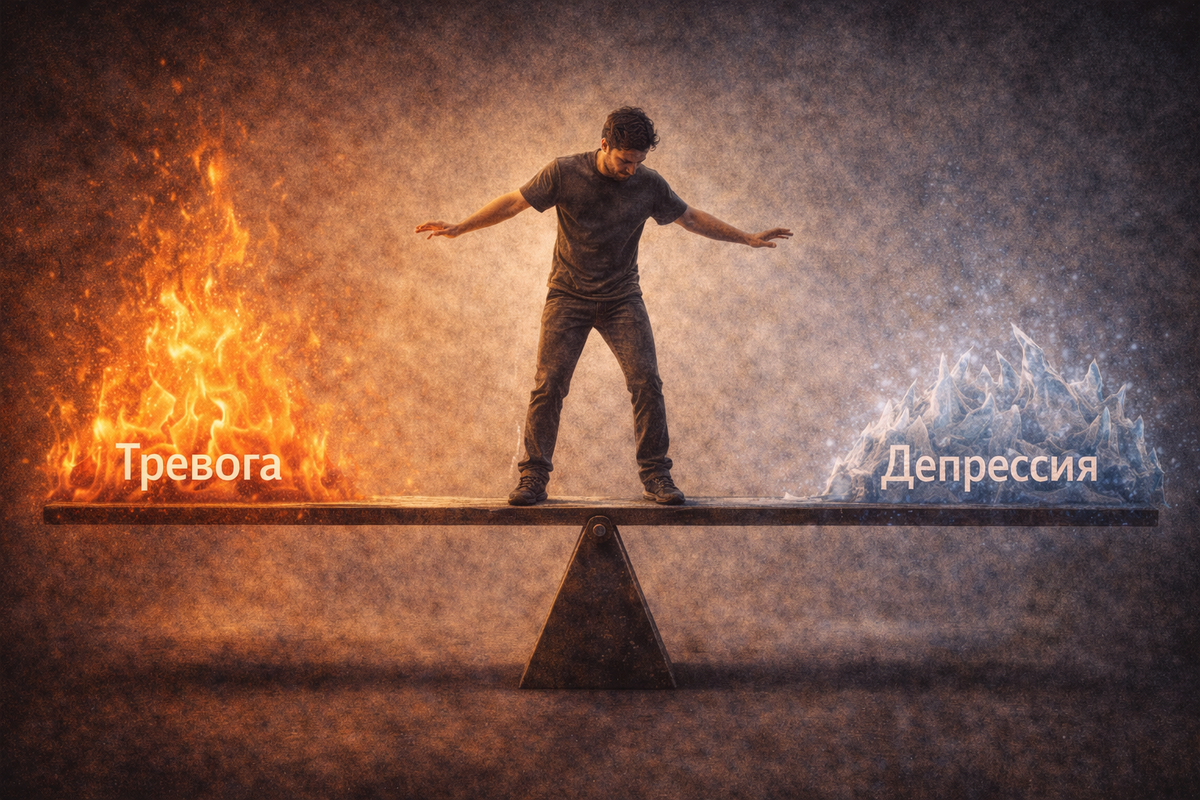 Тревога и депрессия гораздо ближе, чем кажется. Они не противоположности, а два полюса одной системы регуляции.
