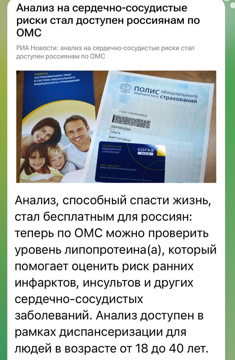 Важная новость с 2026 года: в программу диспансеризации по полису ОМС включили анализ на липопротеин (а) — ЛП(а). Это большой шаг вперёд в ранней диагностике рисков! Однократно и бесплатно сдать этот важный анализ могут россияне в возрасте от 18 до 40 лет. Раньше это исследование часто упускали, особенно у молодых людей без жалоб, но именно оно помогает выявить наследственную предрасположенность к ранним инфарктам и инсультам. Если вы старше 40, но хотите проверить свой ЛП(а), анализ доступен в частных лабораториях. Теперь подробно разберём, почему этот показатель так важен. Если вы следите за холестерином, но ничего не знаете про этот показатель, этот пост для вас. ЧТО ЭТО И ПОЧЕМУ ОН ОСОБЕННЫЙ? Представьте себе частицу "плохого" холестерина (ЛПНП), к которой прикреплен уникальный "ключ" — белок апоА. Этот "ключ" делает ЛП(а) особым и очень коварным. · Генетическая "метка": Уровень ЛП(а) на 90% определяется наследственностью и почти не зависит от диеты, спорта или образа жизни. Он