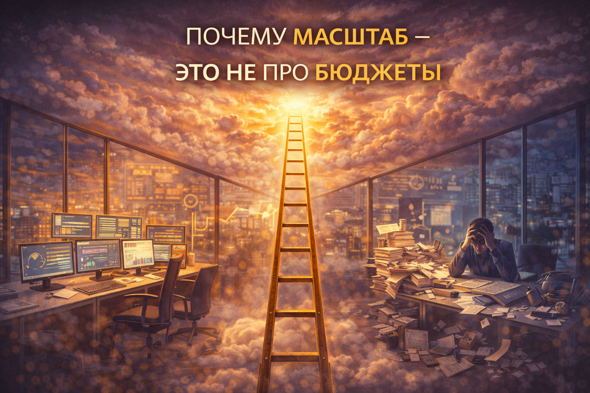 Масштаб — это про готовность системы выдержать рост. Если внутри бизнеса: Увеличение бюджета просто ускорит слив. Денег станет больше в рекламе.