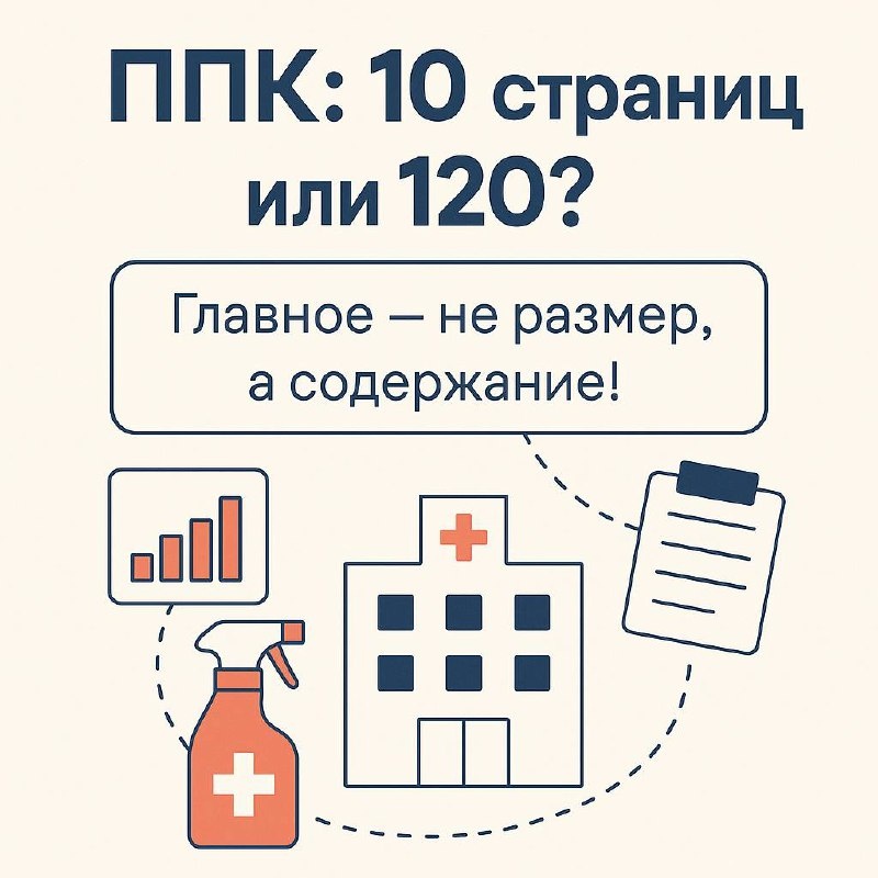 ? 🤔 За время своей практики я разрабатывала много вариантов ППК — пробовала разные подходы, искала готовые шаблоны, создавала свои и консультировала коллег. Со временем у меня сложилось определённое понимание этого процесса. Что могу сказать? 📄 Нет обязательных требований к количеству страниц в ППК. Больше — не значит лучше. Можно написать программу на 120 страниц для небольшой клиники на 2–3 кабинета, а можно — уложиться в 10 страниц для крупного многопрофильного стационара. И оба варианта будут правильными. Главный вопрос: рабочий ли это документ? ✅ Рабочим и правильным он будет только в том случае, если соблюдены требования к содержанию (об этом я писала ранее) и приложены все необходимые документы. Важно помнить: врач-эпидемиолог не должен писать ППК “в одиночку”. Смело подключайте коллег: специалиста по охране труда — за раздел по охране труда; завхоза или ответственного за помещения — по вопросам состояния помещений; главную медсестру — по вопросам контроля за соблюдением дезин
