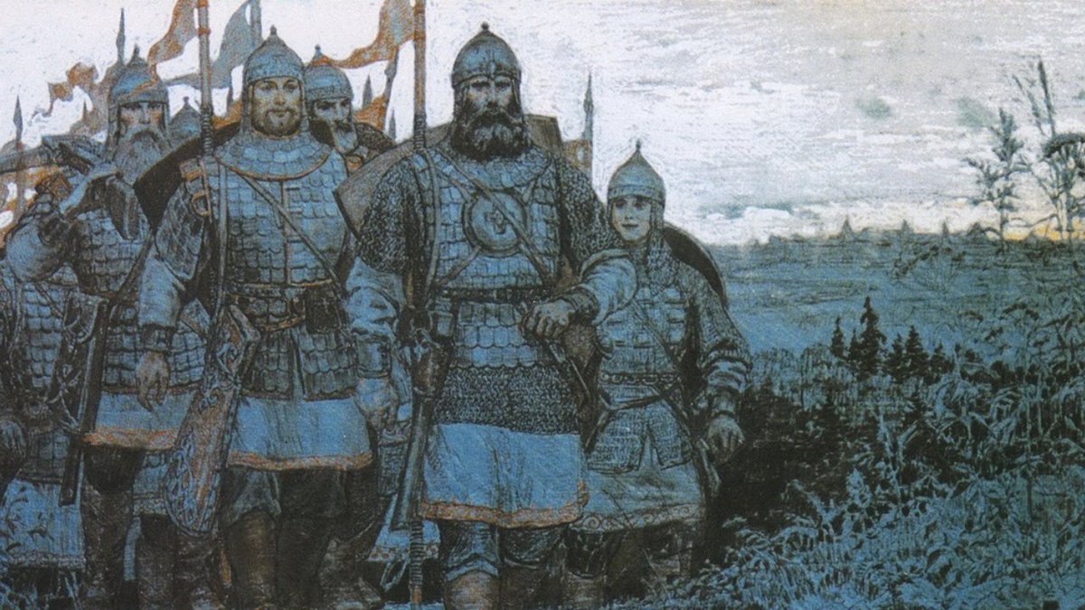 Вооружение русского воина XIV века представляло собой смертоносный синтез восточных и западных технологий. Тяжелая кавалерия и пехота были оснащены длинными гранеными копьями-кончарами, способными прошивать кольчуги, острыми короткими мечами для тесной сечи, длинными саблями для рубящих ударов с седла и чеканами — боевыми топориками, идеально подходящими для пробивания шлемов. Дистанционный бой вели с помощью сулиц (метательных копий) и саадаков — сложных композитных луков со стрелами, ничем не уступавших ордынским. Защиту воина обеспечивали стальные остроконечные шлемы, надежные кольчуги и большие щиты, традиционно выкрашенные в багрово-красный цвет. На поле боя управление тысячами бойцов осуществлялось через четкую систему визуальных и звуковых сигналов: ревели ратные трубы, грохотали литавры, а каждый полк ориентировался на свой развевающийся стяг. Упавший стяг означал катастрофу и потерю управления.