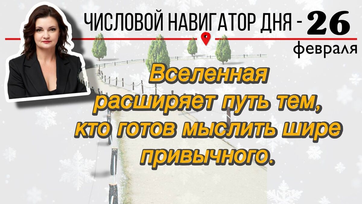 26 февраля — энергия мягкости, дипломатии и внутренней зрелости. Захочется тишины, гармонии и спокойного общения. И это не слабость — это сила баланса. ➖Энергия дня: 2️⃣ ➖Цвет дня: золотистый, тёплый жёлтый, графитовый, тёмно-синий Эмоции становятся глубже, реакции — тоньше. Важно не давить, а договариваться. Не спешить, а чувствовать. Что важно: ✔ сохранять спокойствие в общении ✔ принимать взвешенные решения ✔ выстраивать партнёрство и сотрудничество ✔ проявлять такт и дипломатичность ✔ наводить порядок в делах и обязательствах Мягкость завтра открывает больше дверей, чем давление. На что обратить внимание: Может появиться внутреннее напряжение или чувство ответственности за всё сразу. Не берите на себя лишнее. Также возможна чувствительность к словам — выбирайте их осторожно. Лучше не делать: • вступать в споры и конфликты • торопить события • принимать решения в эмоциях • перегружать себя обязанностями • игнорировать усталость Спокойный темп завтра работает лучше спешки.