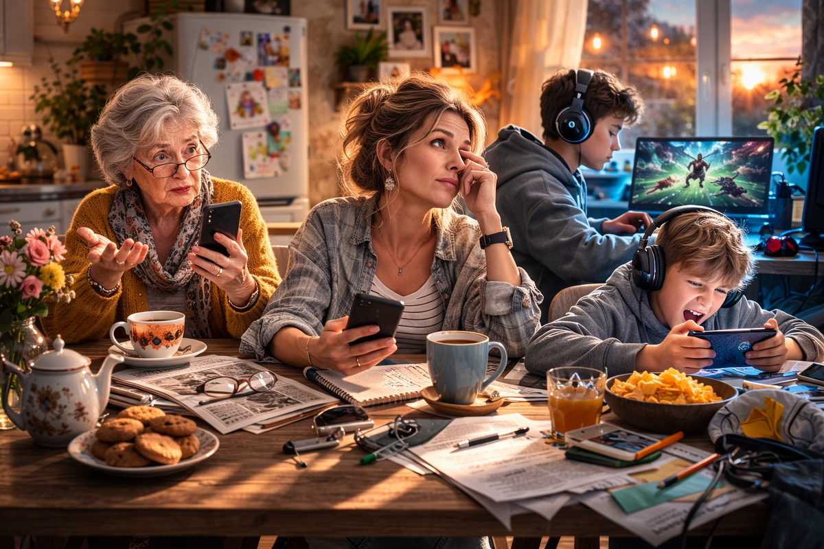 Раньше я пыталась контролировать — «час и всё». Не работает, потому что их жизнь там: учёба, друзья, всё. Я пыталась объяснять свекрови, что они не просто сидят, это их мир. Не работает, потому что для неё экран = опасность.