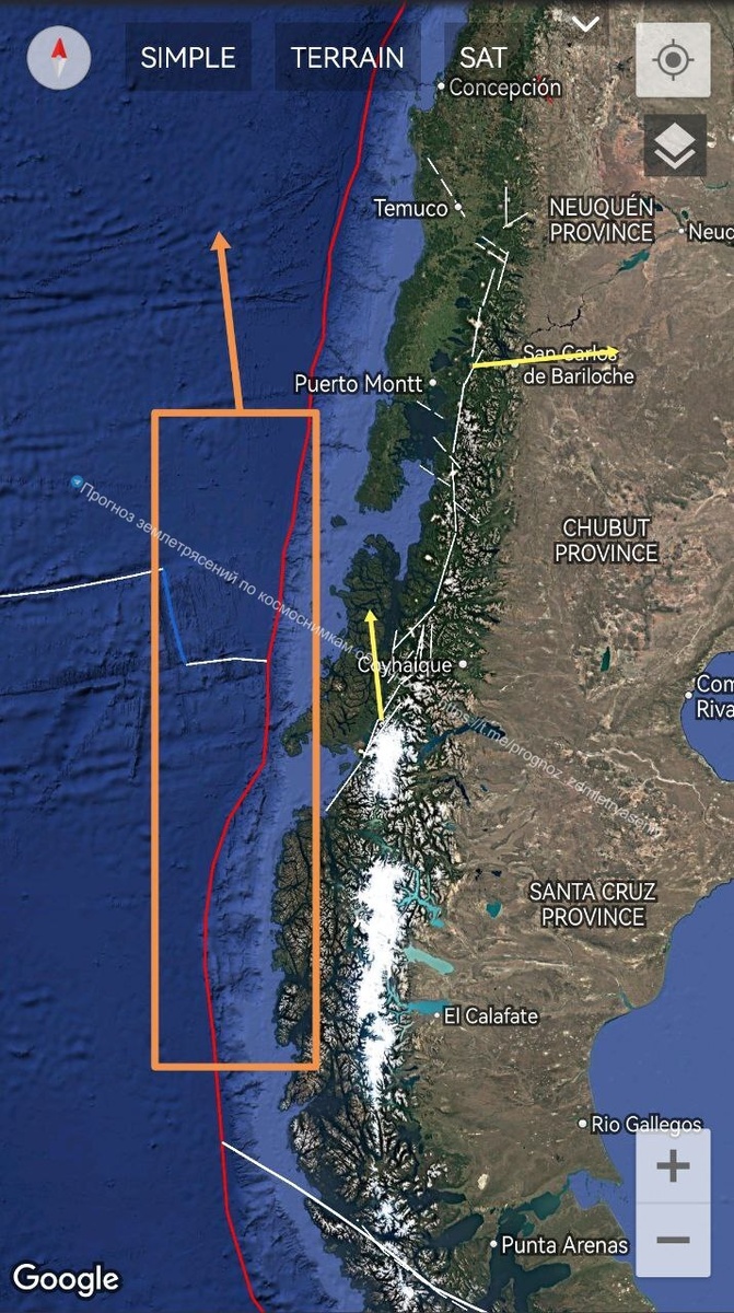 По логике формирования ОСТИ и их смещению (по часовой стрелке) ситуация в Чили накаляется. Крайний ОСТИ со стороны Тихого океана тянет уже на М7+ ===== According to the logic of the formation of CSTIs and displacement (clockwise), the situation in Chile is heating up. The last CSTI from the Pacific Ocean is already pulling to the M7+