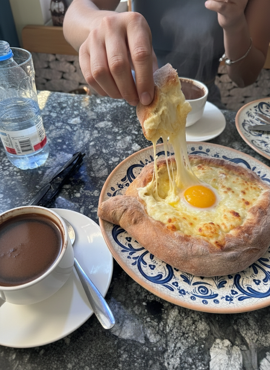 Если хотите хачапури по-аджарски, идите на улицу Горгиладзе 18. Но заказывайте только "очищенную" лодочку. Повар выскребает лишнее тесто из бортов, и остается одна тончайшая хрустящая корочка, а внутри - целое озеро горячего, тягучего сыра.