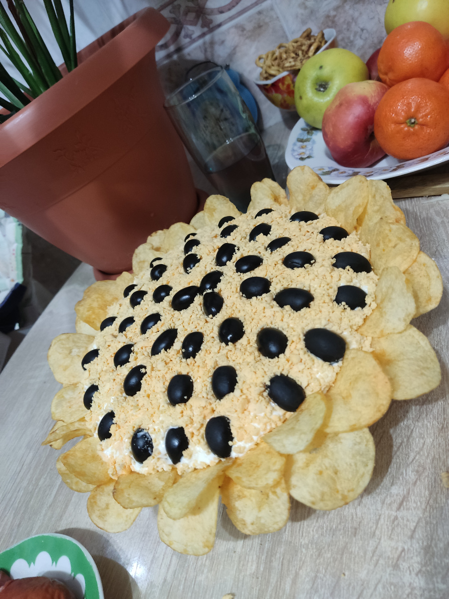 Приготовим сегодня салатик подсолнух, только без чипсов прингалс:) В магазине были только лейз. Готовила давно, решила сегодня вспомнить рецепт.
