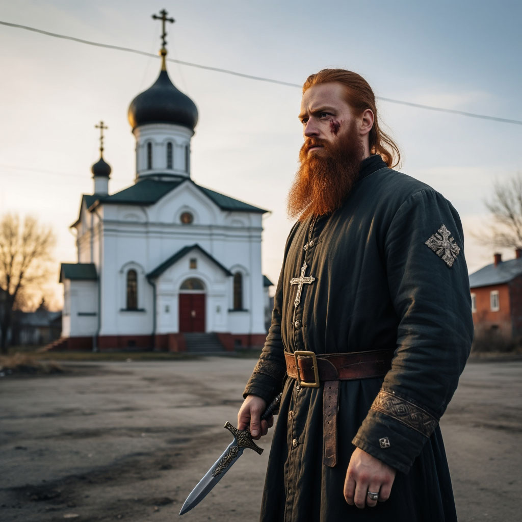 Сам он вышел один на площадь перед церковью. В руке держал тот самый нож с чёрной рукоятью, на шее — увесистый крест из необработанного серебра.