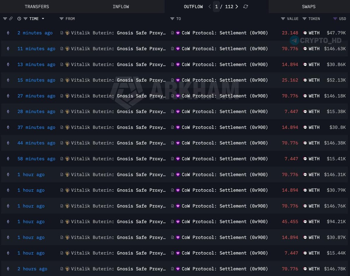 🤔 За 1 час Виталик Бутерин продал #ETH на $1,000,000+ – кошелек