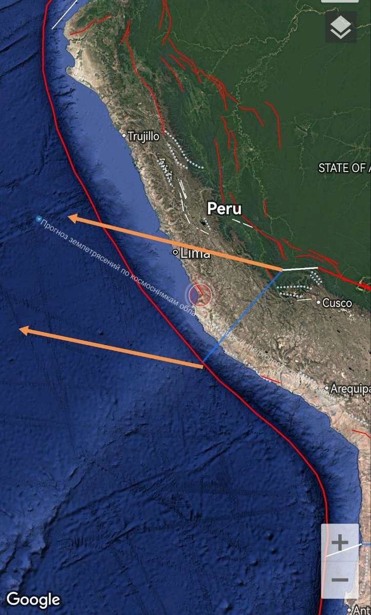 Облачная проекция (M6+) от северо-западной границы плиты Альтиплано уехала на северо-запад ==== The cloud projection (M6+) from the northwestern boundary of the Altiplano plate moved to the northwest