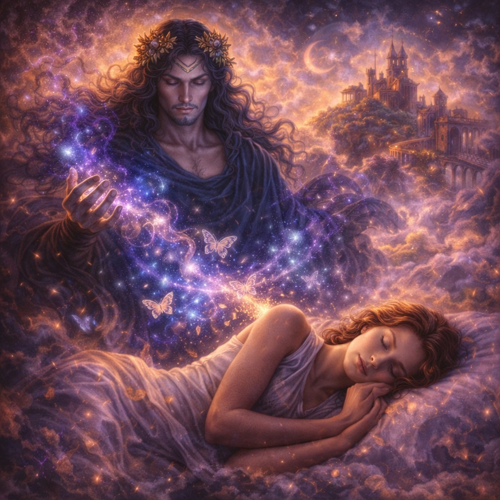 Этим миром управляет Морфей — бог сновидений, создающий образы, способные изменить сознание. Он не правит Олимпом. Не вмешивается в войны. Но каждую ночь его власть распространяется на богов и людей. Потому что во сне нет границ между смертным и бессмертным. Именно там Морфей становится властителем. Сын ночи и тишины Морфей — сын Гипноса, бога сна, и внук Нюкты, древней богини ночи. Его происхождение уже говорит о многом. Он рождается из темноты и покоя. Его мир — не свет Олимпа, а глубина бессознательного. Морфей — не бог событий, а бог состояний. Он не управляет реальностью напрямую. Он управляет тем, как она отражается в сознании. И это делает его власть почти безграничной. Тот, кто формирует образы Имя Морфей связано со словом «форма». Он способен принимать любой облик и создавать любые видения. Он