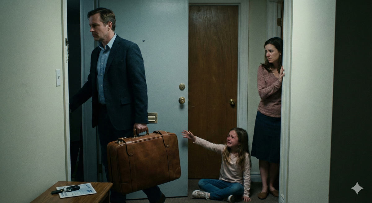 Муж методично проверил карманы, подхватил чемодан и вышел, даже не взглянув на плачущую дочь. Дверь захлопнулась с коротким, сухим щелчком.