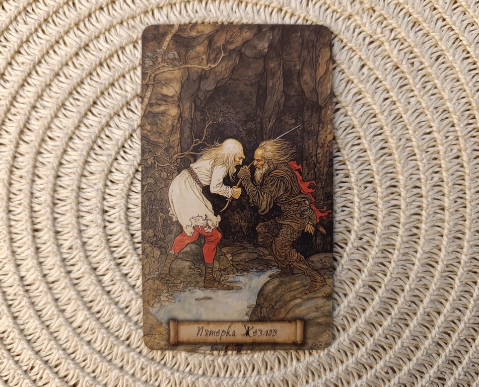 Карта дня на 26 февраля – Пятёрка жезлов, она говорит о том, что сегодня придётся соперничать