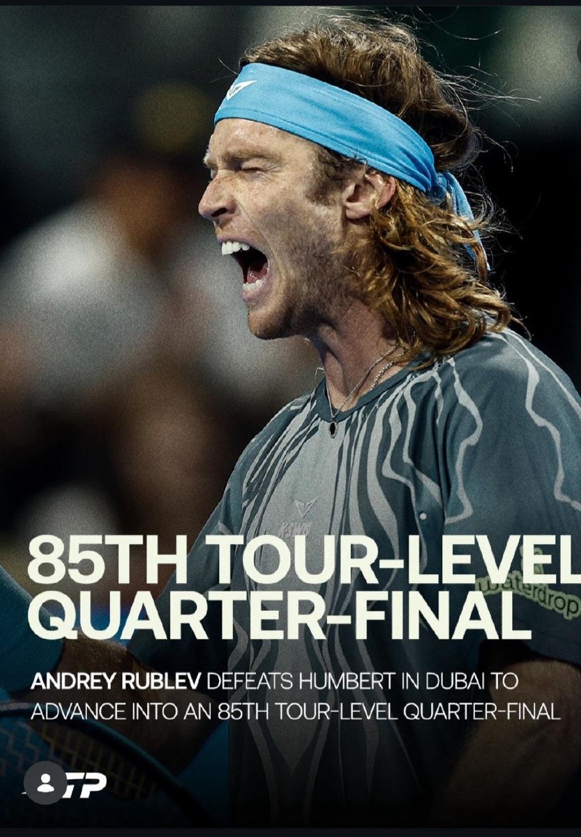 Андрей Рублев обыграл Умбера в Дубае и вышел в 85-й четвертьфинал в своей карьере 🔥