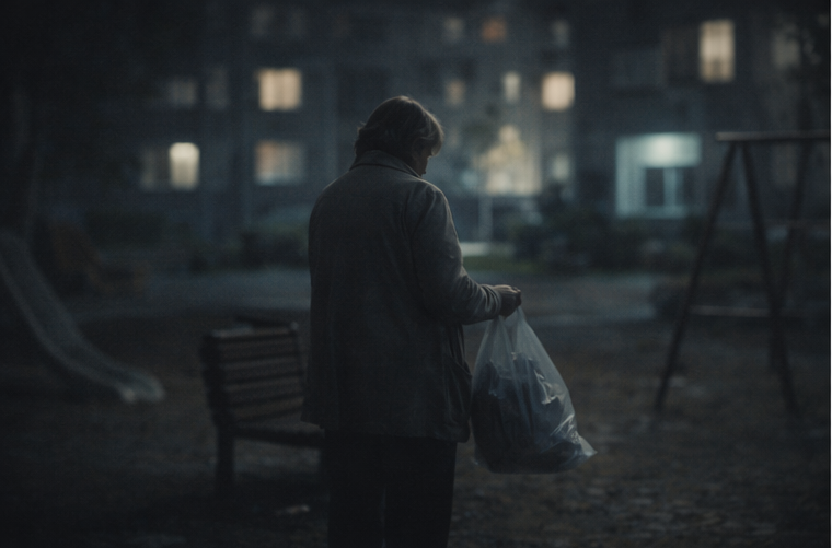 В доме её знали давно. Тихая женщина лет пятидесяти, всегда одна. Здоровалась, улыбалась, но в разговоры не лезла. Работала где-то посменно, потому что свет в её окнах часто загорался в странное время. А потом жильцы начали замечать другое. Почти каждую ночь она выходила во двор. Часов в одиннадцать. Иногда позже. Кто-то видел из окна, как она долго ходит возле подъезда, наклоняется, что-то перекладывает, задерживается у лавочек. И началось. В чате дома написали осторожно: — У нас тут кто-то бродит по ночам. Потом смелее: — Может, закладки ищет? — Или наоборот оставляет. Фотографии с тёмным силуэтом пересылали друг другу, увеличивали, обсуждали. Люди, которые никогда раньше не общались, внезапно почувствовали себя командой. Наконец кто-то предложил вызвать участкового. Но раньше участкового во двор вышел Сергей из первого подъезда. Просто потому, что устал читать догадки. Он подошёл ближе. Женщина как раз стояла у детской площадки. В руках у неё был пакет. Сергей поздоровался. Она вздр