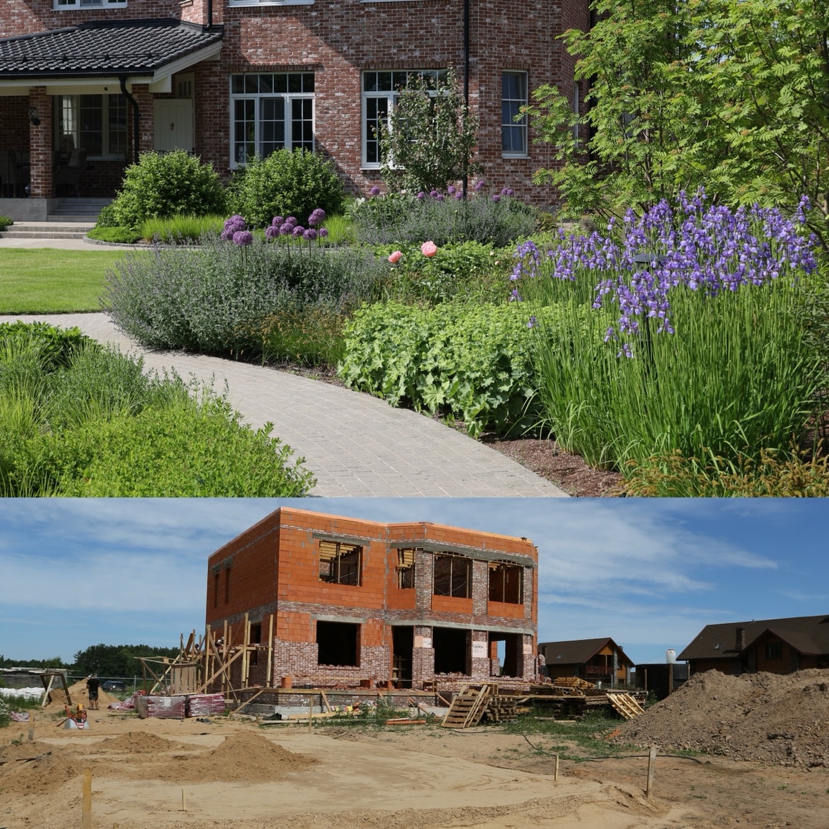 Мне всегда интересно посмотреть фото до реализации и после. Наш проект"Акватория" Московская обл.Реализация 2023-2025 гг. Посадкам многолетников 2-й год.