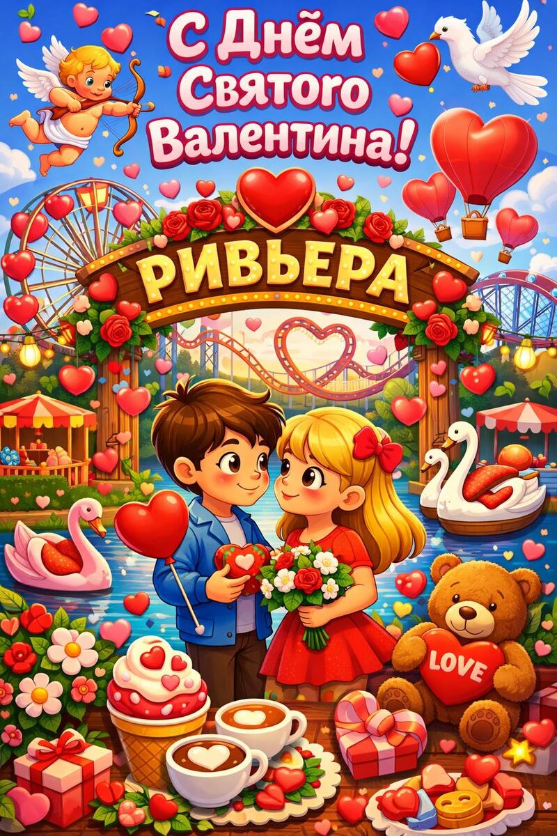 ❤️ Пусть сегодня в парке «Ривьера» станет чуть больше смеха, улыбок и тёплых объятий. Катайтесь вместе, держитесь за руки, ловите моменты радости и создавайте воспоминания, к которым захочется возвращаться снова и снова 🎡💖 Любовь — это эмоции, а эмоции лучше всего проживаются там, где весело, ярко и по-настоящему. Ждём вас в «Ривьере» — месте, где сердца бьются быстрее 💕