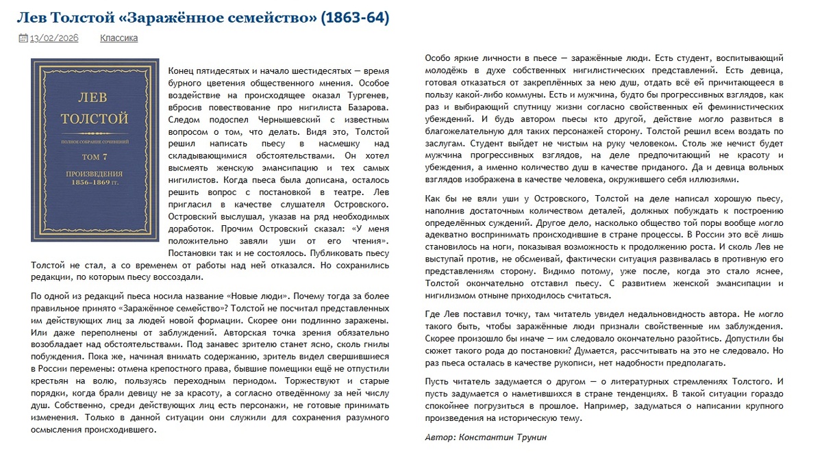 Лев Толстой «Заражённое семейство» (1863-64) | Критика