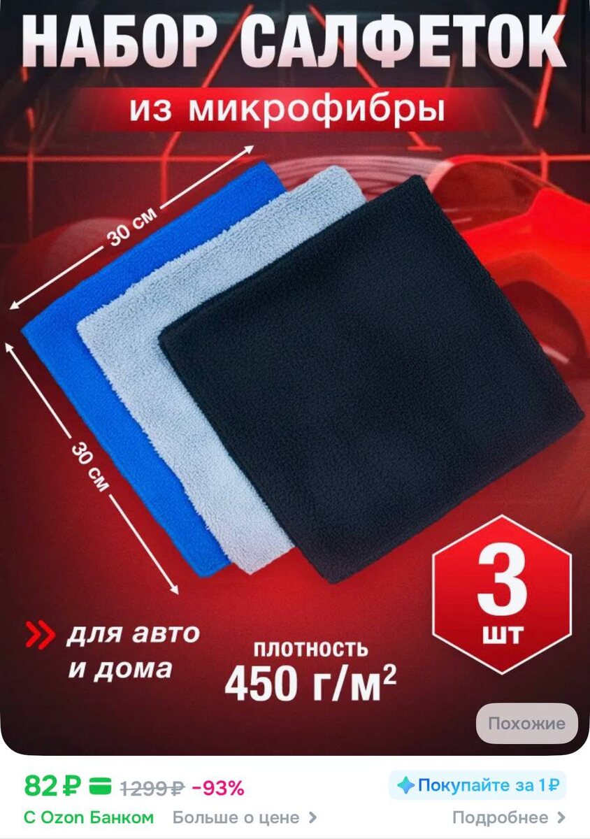 😀😀Салфетка из микрофибры. Размер 30х30см. Плотность 450гр/м2. Набор из трех штук.