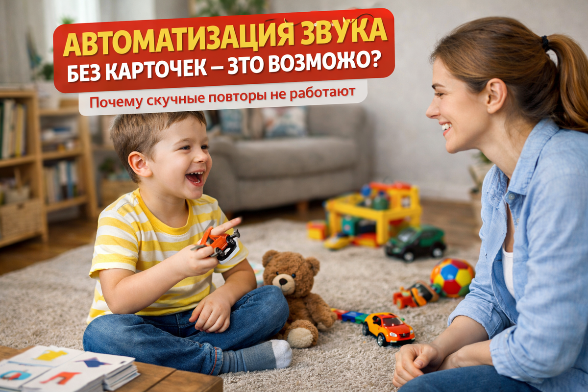 Если честно — да. Но не так, как хочется большинству родителей. Когда слышат слово «автоматизация», сразу представляют карточки, слоги, «скажи ещё раз», «повтори правильно». И ребёнок напрягается ещё до начала занятия. Возникает ощущение, что без бесконечных повторов звук не закрепится. На самом деле автоматизация — это не про карточки. Это про перенос звука в живую речь. Что такое автоматизация на самом деле Звук считается автоматизированным не тогда, когда ребёнок может сказать его 10 раз подряд по просьбе. А тогда, когда он: — использует его в словах без напоминания; — не «теряет» при быстрой речи; — сохраняет при эмоциях; — не возвращается к старому варианту. Карточки — это всего лишь инструмент. Не цель. Можно ли вообще без повторов? Полностью без повторов — нет. Мозгу нужно количество, чтобы новая артикуляционная схема стала привычной. Но повтор ≠ «механически 30 раз подряд». Повтор может быть: — в игре; — в движении; — в диалоге; — в бытовой ситуации; — в эмоциональном рассказе.