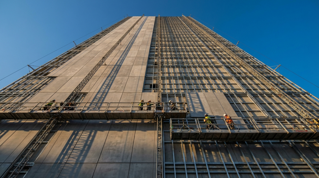 Стоимость монтажа вентфасада под ключ в 2026 году варьируется в широком диапазоне, но попытка найти подрядчика «по низу рынка» всегда заканчивается допработами. Качественный монтаж СФБ требует квалификации: монтажник должен уметь работать с деликатными краями панелей, правильно выставлять зазоры (обычно 3-5 мм) и герметизировать швы полиуретановыми герметиками, устойчивыми к УФ-излучению.