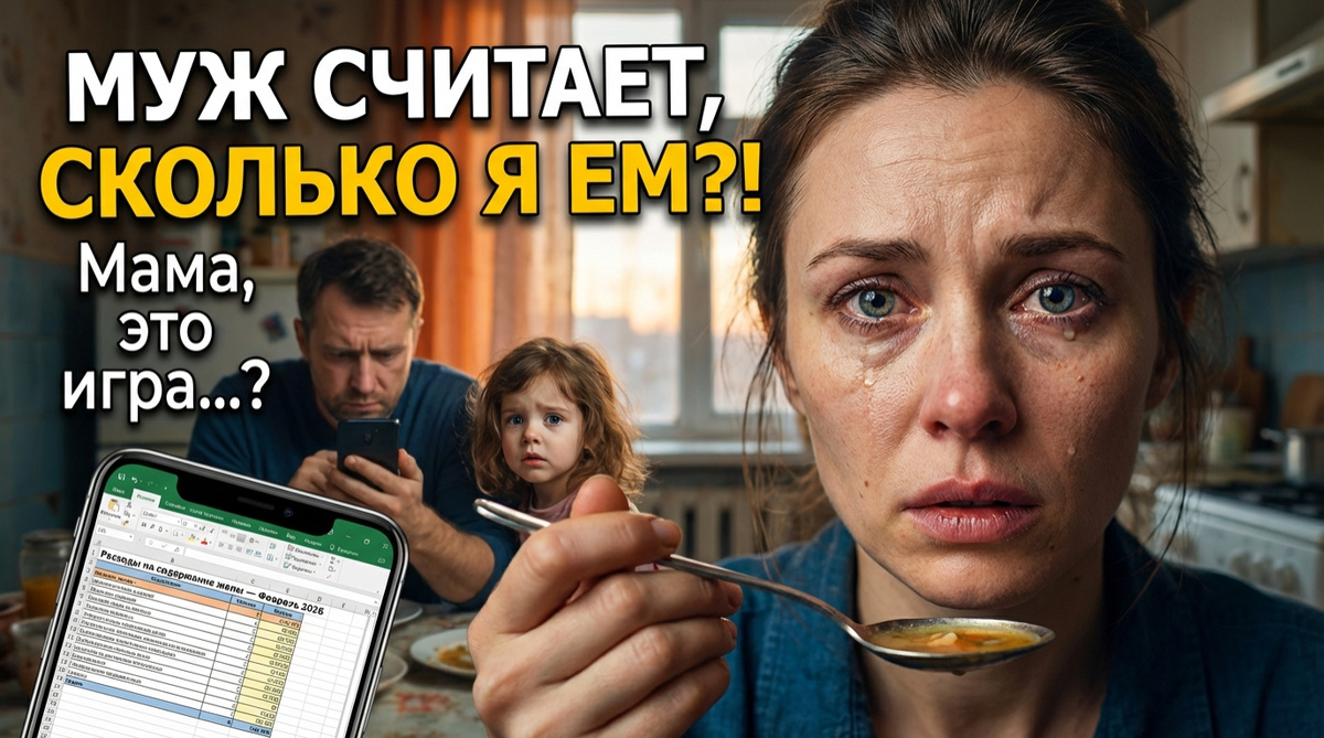 Елена замерла с ложкой супа на полпути ко рту. Пятилетняя Милана смотрела на неё широко распахнутыми глазами, в которых читалось детское недоумение. За спиной девочки стоял Игорь с телефоном в руках, и на экране ясно виднелась таблица Excel с заголовком "Расходы на содержание жены — февраль 2026".