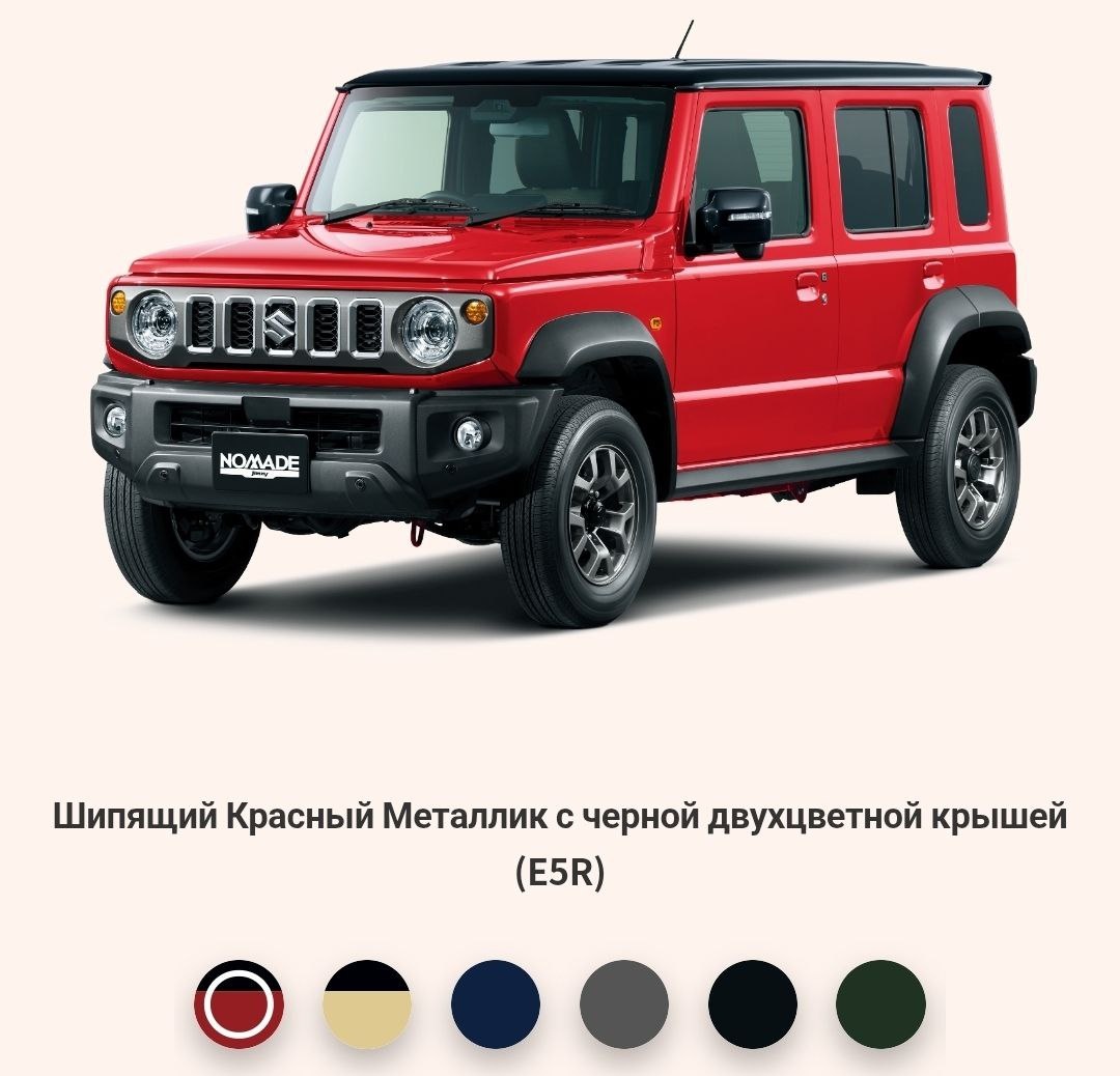 Всем привет. Сегодня речь пойдет о новом Suzuki Jimny 2025 год, джип/suv 5 дв., 4поколение, в кузове JC74 (01.2025 - н.в.). 3 апреля2025 года Suzuki Motor Corporation представила в Японии совершенно новую модель Jimny Nomade. Это первая пятидверная модель Jimny — серии автомобилей сфункциями и ходовыми характеристиками полноценных полноприводных машин. НовыйJimny Nomade — это модель, созданная на основе концепции «пятидверногокомпактного внедорожника с полным приводом и подлинной проходимостью». Сохранив проходимость, которая является самой привлекательной особенностью серии Jimny. Улучшили доступ в салон и сделали сиденья более удобными для четверых взрослых, установив задние двери и увеличив колесную базу. Дизайн автомобиля включает в себя переднюю решётку с пятью прорезями, которая является символом Jimny, окрашенную в цвет «металлик» и обрамлённуюхромированной рамкой, что подчёркивает ощущение качества. Кроме того, автомобиль доступен в шести цветах, в том числе в новых цветах для
