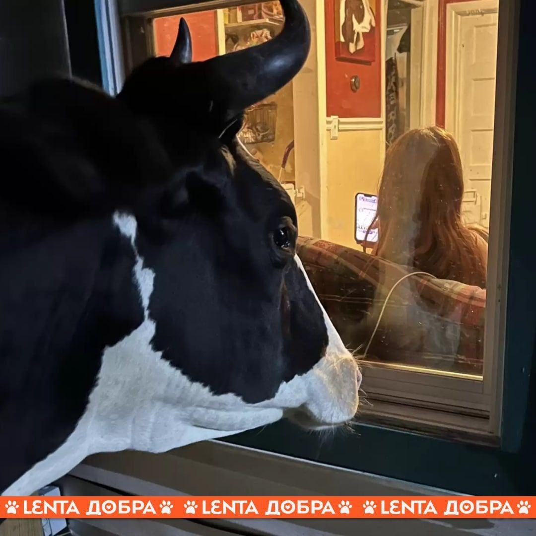 Теперь она выросла, но ее сердце осталось таким же большим и верным. 🪟 Каждый день Дженна аккуратно стучит рогами в окно, чтобы позвать своего человека. Ей важно просто постоять рядом, почувствовать ласку и отдать свою тихую коровью нежность. Её большое сердце вмещает не только телят, но и тех, кого она выбрала своей семьёй. Настоящая любовь не знает границ. ❤️