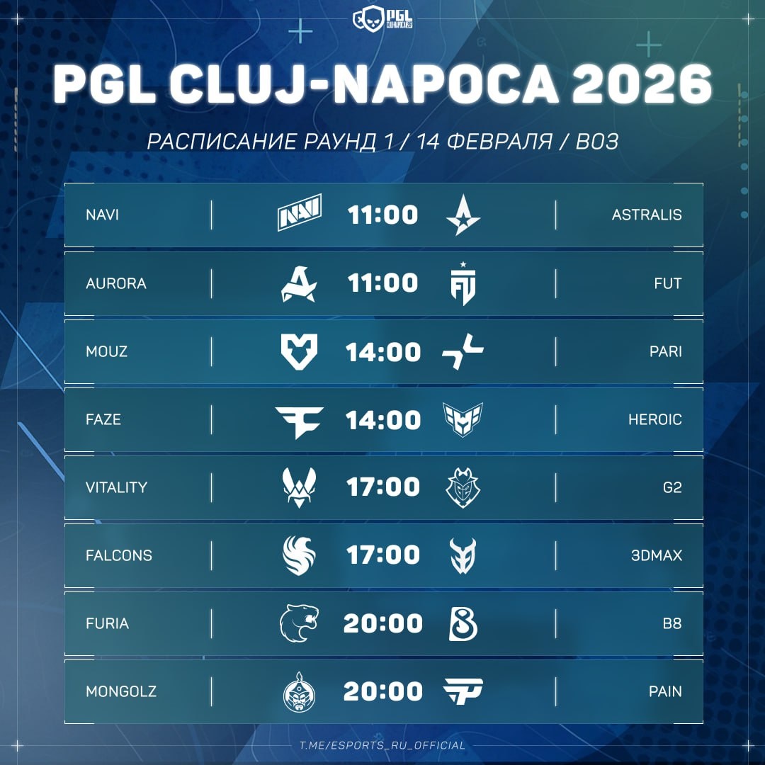 🙇♂️ Расписание первого раунда PGL Cluj-Napoca 2026